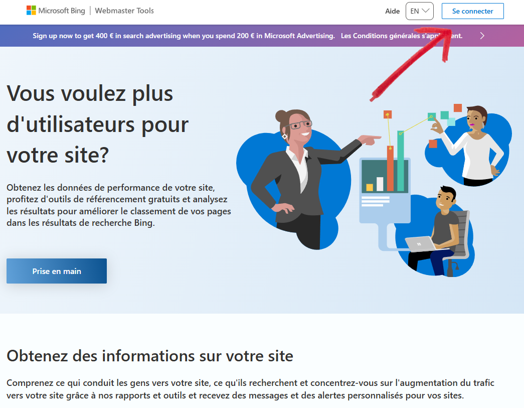Etape 1 : Se connecter sur l’outil Webmaster Tools Bing